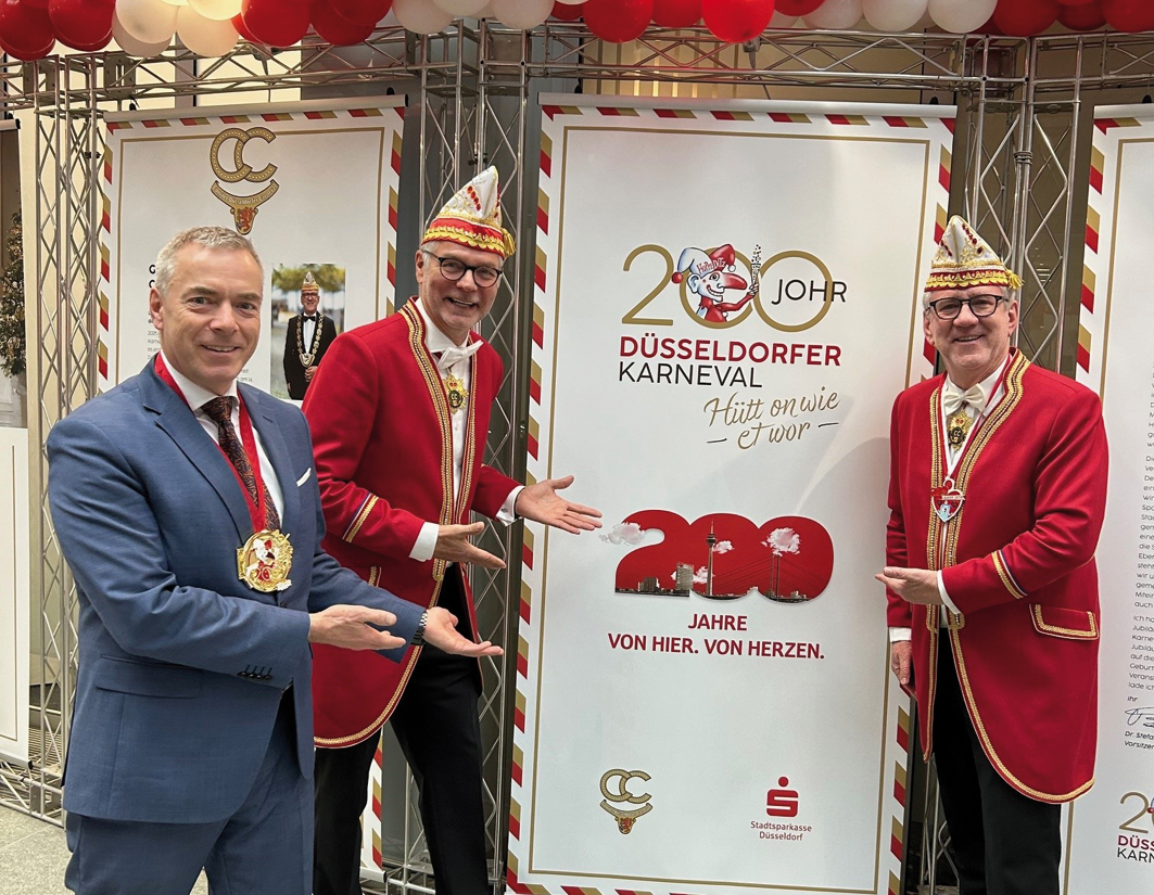 „200 Jahre Karneval und 200 Jahre Stadtsparkasse Düsseldorf – das Jahr 2025 ist für beide Institutionen von besonderer Bedeutung, und für uns ein willkommener Anlass, um dem Düsseldorfer Karneval eine eigene Informationsschau zu widmen.“ Mit diesen Worten eröffnete heute Vorstandsvorsitzender Dr. Stefan Dahm gemeinsam mit CC-Präsident Lothar Hörning und CC-Geschäftsführer Uwe Willer die Jubiläumsausstellung „200 Johr – Hütt on wie et wor“.