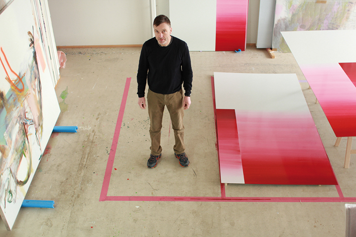 Geboren 1954 in Krefeld, etablierte sich Albert Oehlen mit kaum 30 Jahren als einer der spannendsten, originellsten Maler der Gegenwart, der sein zweifelndes Verhältnis zum Gegenstand und der Aktualität des Mediums mit diesem selbst thematisierte. Ausgehend von der expressiven Gegenständlichkeit in der Malerei und dadaistischer Haltung lässt er schon bald die Figur verschwinden und verknappt Architekturformen, mitunter in Konzentration auf die Primärfarben. Albert Oehlen kooperiert in diesen Jahren mit seinem Bruder Markus und mit Werner Büttner; vor allem mit Georg Herold und Martin Kippenberger arbeitet er zusammen, die er teils von seinem Studium bei Sigmar Polke in Hamburg kennt. Mit einem leicht unterkühlten Selbstbewusstsein, dem alle Medien der künstlerischen Artikulation offen stehen, treten diese Künstler ganz anders auf als die Mülheimer Freiheit oder die Berliner Jungen Wilden vom Moritzplatz. Seine erste Einzelausstellung hat Oehlen 1981 bei Max Hetzer in Stuttgart. In Düsseldorf ist er in den 1980er Jahren (aber nur in diesen) recht gut präsent, schon 1982 bei Arno Kohnen und der CCD Galerie, 1984 bei „Von hier aus“ in den Messehallen und 1988 am Grabbeplatz bei der „BiNationale“.