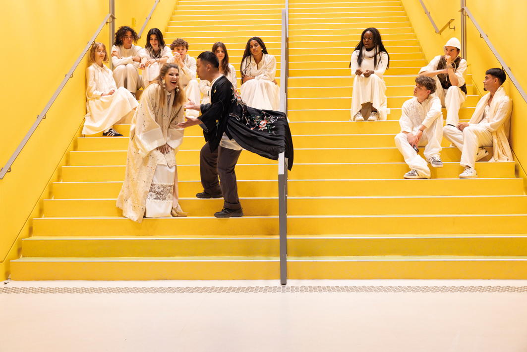 Oper wird hier nicht erklärt oder verteidigt. Sie passiert. Chöre aus Menschen, die noch nie gesungen haben. Rapper auf der Bühne. Ein Publikum, das nicht zuschaut — sondern mittendrin ist, ohne es geplant zu haben. „Von einem Abend auf dem Sofa bis in ein großes Opernhaus ist es ein weiter Weg. Irgendwo dazwischen muss etwas sein. Das sind wir.“