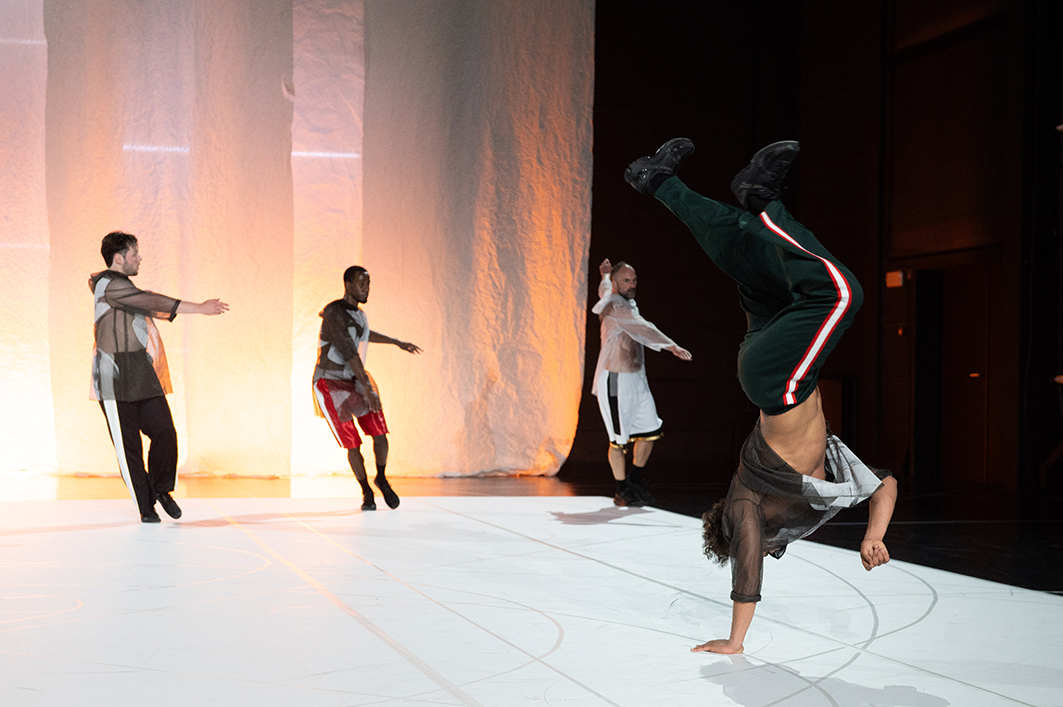 Endlich kommt die international gefeierte Choreografin Anne Teresa De Keersmaeker mit ihrer Kompanie Rosas zurück ans tanzhaus nrw. Ihr neues Stück in Zusammenarbeit mit Radouan Mriziga bezieht sich auf Vivaldis berühmtes Werk Die vier Jahreszeiten. Der italienische Titel des Tanzstücks erscheint erstmal sperrig: Il Cimento dell’Armonia e dell’Inventione. Übersetzt bedeutet er: Das Wagnis von Harmonie und Erfindung oder auch der Kampf von Harmonie und Erfindung. Es handelt sich dabei um den Titel der Sammlung von zwölf Konzerten Vivaldis, in der Die vier Jahreszeiten den Anfang bilden. Der mitreißende ‚Barock-Hit‘ ist eines der am häufigsten wiedergegebenen Werke des klassischen Repertoires – und eine eindrucksvolle Ode an die Natur. Doch wie arbeiten Keersmaeker und Mriziga mit der Vertrautheit dieser Musik? Was kann sie uns heute offenbaren? Im Wechselspiel mit dem bekannten Werk und den vielen Assoziationen und Emotionen, die es hervorruft, entfalten vier virtuose Tänzer*innen unterschiedlicher Tanzstile und Generationen ein komplexes Bewegungsrepertoire von beeindruckender Schönheit. Mal behutsam wie sanfter Wind, mal energiegeladen wie ein Gewitter arbeiten sie sich zum Höhepunkt der Partitur vor – und deuten dabei Zyklen, Muster und Rhythmen immer wieder neu. „90 magische Minuten, gefüllt mit Tanzbildern in allen Stilen, bis hin zu fantastischen Breakdance-Nummern, vergehen im Flug“, schreibt Ditta Rudle in der Tanzschrift. „Die Choreografie ist, wie die Interpretation der Musik, so plastisch, dass man die Hitze der Sonne, die Kälte des Winters spürt, das Flackern des Feuers, das Knirschen des Eises vernimmt, das Bellen der Hunde und Singen der Vögel hört und die Jäger im Wald oder die schlafenden Hirten im Gras sieht. In der Stille sind die Passagen abstrakt, hier wird De Keersmaekers Handschrift deutlich.“