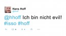 Hashtag mit meinem Namen. Dazu meine Facebook-Kennung und mein Twitter-Account. Schnell noch meine...