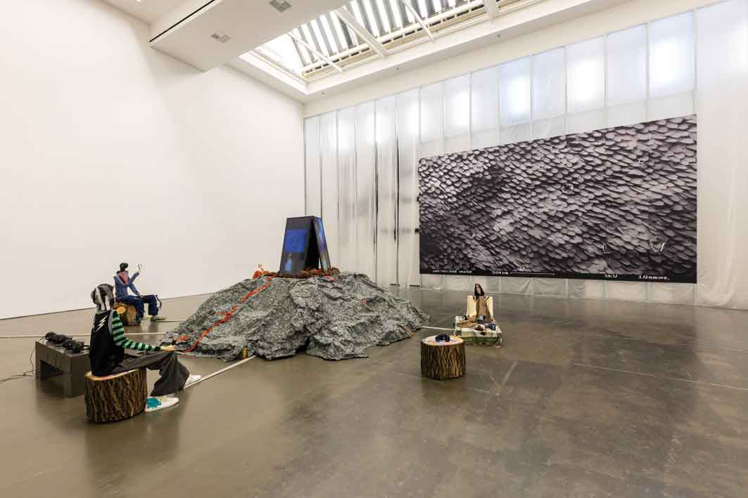 Spektakulär ist die Installation von Nicolas Fehr im Kinosaal: Ein „Lagerfeuer“ führt unterschiedliche Medien mit zahlreichen Anspielungen auf unsere Gesellschaft zusammen, auch hier autobiographisch und mit der Rückzugserfahrung während der Pandemie entwickelt. Und all das das ist nur ein Teil dieser guten Ausstellung.