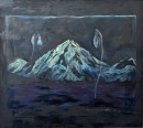 Zentral ins Anthrazit-Schwarz gesetzt mutet ein mondbeschienener, kegelförmiger Berg nahezu surreal...