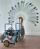 Ein rudimentärer Rollstuhl eindeutig und selbstbewusst! In einfacher Ausführung in himmelblau...