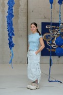 Wie sehr es zur Ausstellung passte: Auf den Stufen vor der Kunsthalle faltete Nomin Bold mit ihrem...