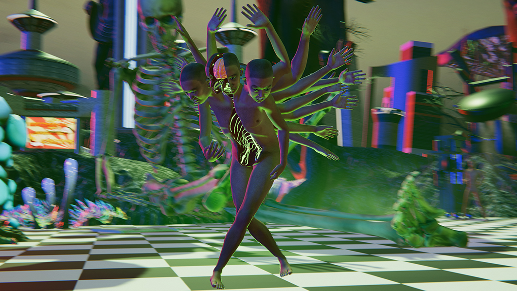 Für die 6. Internationale Biennale für digitale Kunst in Montreal haben die beiden Künstler*innen diese Version von Delusional World entwickelt. Lu Yang lebt und arbeitet in Shanghai und Tokio und gehört international zu den spannendsten Positionen zeitgenössischer Kunst. Das künstlerische Schaffen umfasst 3D-Animationsfilme, Game-Installationen, Hologramme, grafische Arbeiten und Virtual Reality. In Düsseldorf sind beide Künstler*innen keine Unbekannten: Lu Yangs Arbeiten waren bereits in den Ausstellungen Worldbuilding. Gaming and Art in the Digital Age der Julia Stoschek Foundation und Superheroes im NRW-Forum zu sehen. Und Louise Lecavalier ist regelmäßig mit eigenen Stücken im Programm des tanzhaus nrw vertreten – zuletzt mit ihrer gefeierten Solo-Performance danses vagabondes.