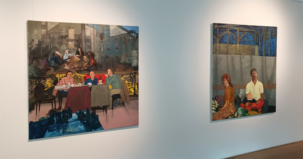 Ein Ausstellungsort, der sich ganz der Malerei von in Düsseldorf ansässigen Künstler*innen widmet, ist das Maxhaus. Das katholische Stadthaus vis-à-vis vom Hetjens-Museum wurde 2006 auf dem Fundament des ehemaligen Franziskanerklosters neu eröffnet und veranstaltet Seminare, Vorträge und Konzerte. Dass hier auch Ausstellungen stattfinden, versteht sich aus der traditionellen Beziehung von Kunst und Kirche, zunächst mit der einstigen Rolle als Auftraggeber und in der Vermittlung der biblischen Erzählungen, und heute unter kommunikativen und für öffentliche Phänomene sensibilisierenden Aspekten. Auch von daher ist die Ausstellung von Edith Oellers hier, mitten im Stadtzentrum, prädestiniert – abgesehen von der Qualität ihrer Malerei und dass es überfällig war, diese in größerem Rahmen in Düsseldorf vorzustellen.