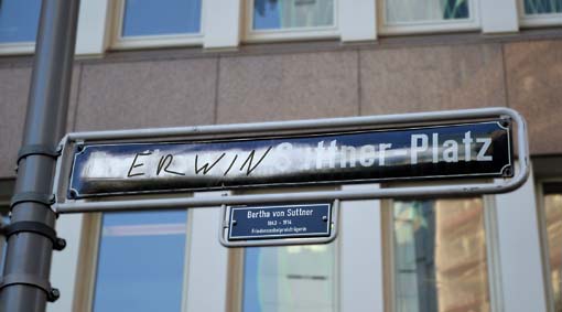 Die nächste Frage folgt auf dem Fuß: Wäre es nicht an der Zeit, dass die Erben großer Menschen darüber nachdenken, einer Stadt das Recht zu entziehen, den Namen ihrer Ahnen in gruselige Betonlandschaften zu gießen? Müssten nicht die Nachfahren der Friedensnobelpreisträgerin Bertha von Suttner sagen: Nö, so geht das nicht. Wir nehmen euch den Namen weg.